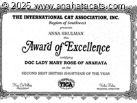 Rosi is our second female in the cattery and now she is the oldest one. We got her from NY cattery Alcmena. She had many perfect babies over the years. She has perfect health and very calm real british temperament. She has also very nice british type and heavy bones. She is very social cat, but never likes when you pickup her. As a real lady she only permits to pet her.