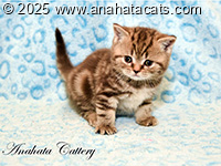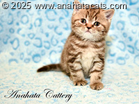 Anahata Odetta BRI bs 22 62 - chocolate silver classic tabby w/orange eyes
