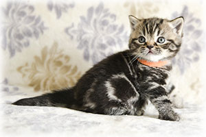 color: black silver classic tabby w/orange eyes